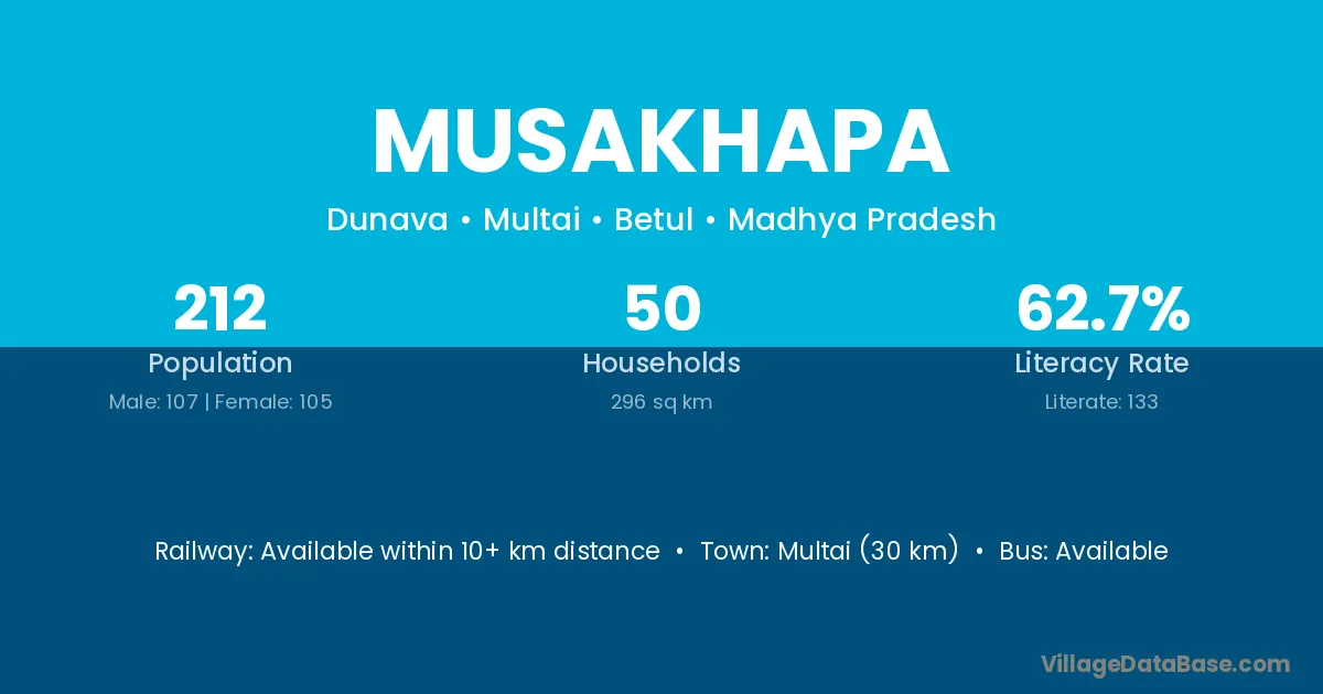 Multai (30 km) is the nearest town to Musakhapa village for major economic activities and is located approximately 30 km away.