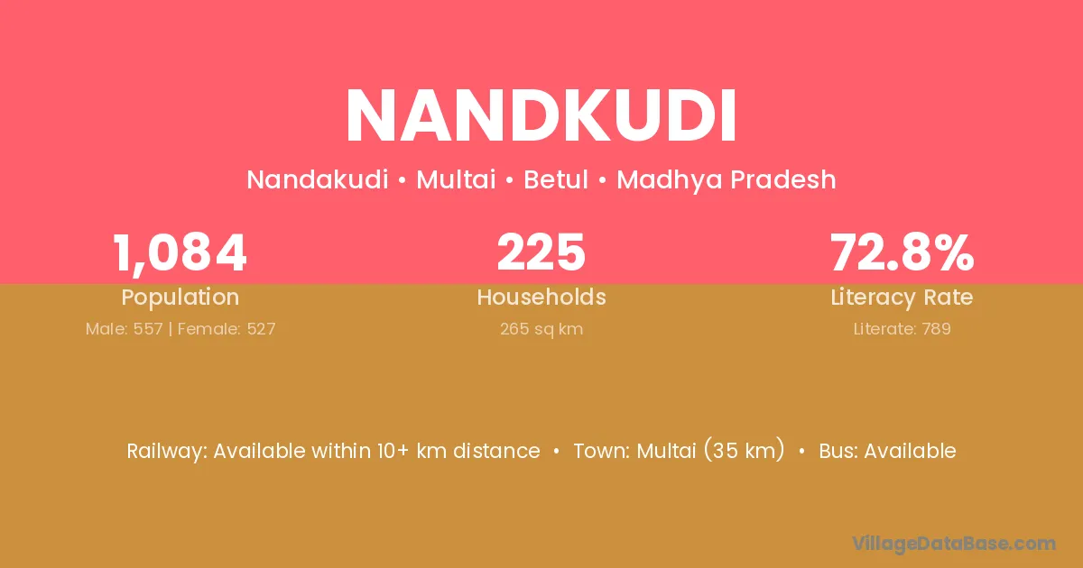 Multai (35 km) is the nearest town to Nandkudi village for major economic activities and is located approximately 35 km away.