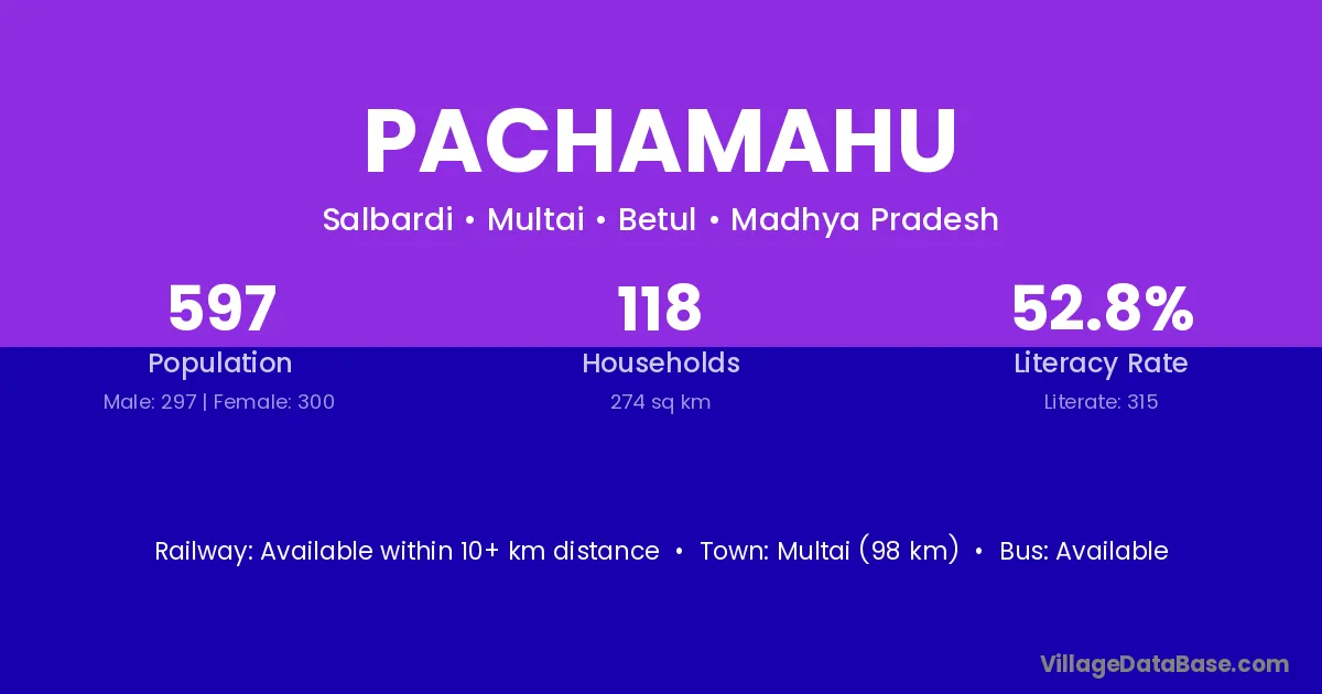Multai (98 km) is the nearest town to Pachamahu village for major economic activities and is located approximately 98 km away.