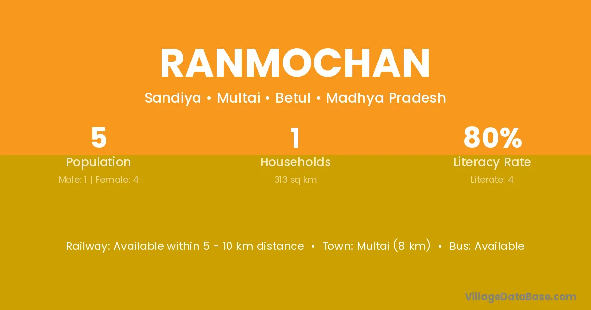 Multai (8 km) is the nearest town to Ranmochan village for major economic activities and is located approximately 8 km away.