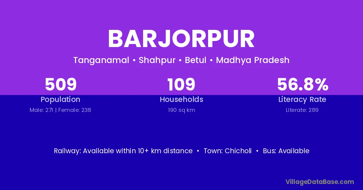 Chicholi is the nearest town to Barjorpur village for major economic activities