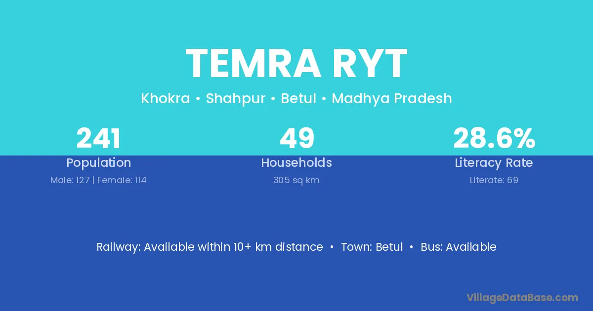 Temra Ryt village has a total population of 241 people, of which 127 are males and 114 are females.