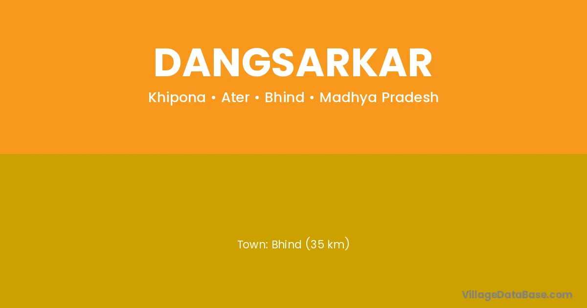 Bhind (35 km) is the nearest town to Dangsarkar village for major economic activities and is located approximately 35 km away.