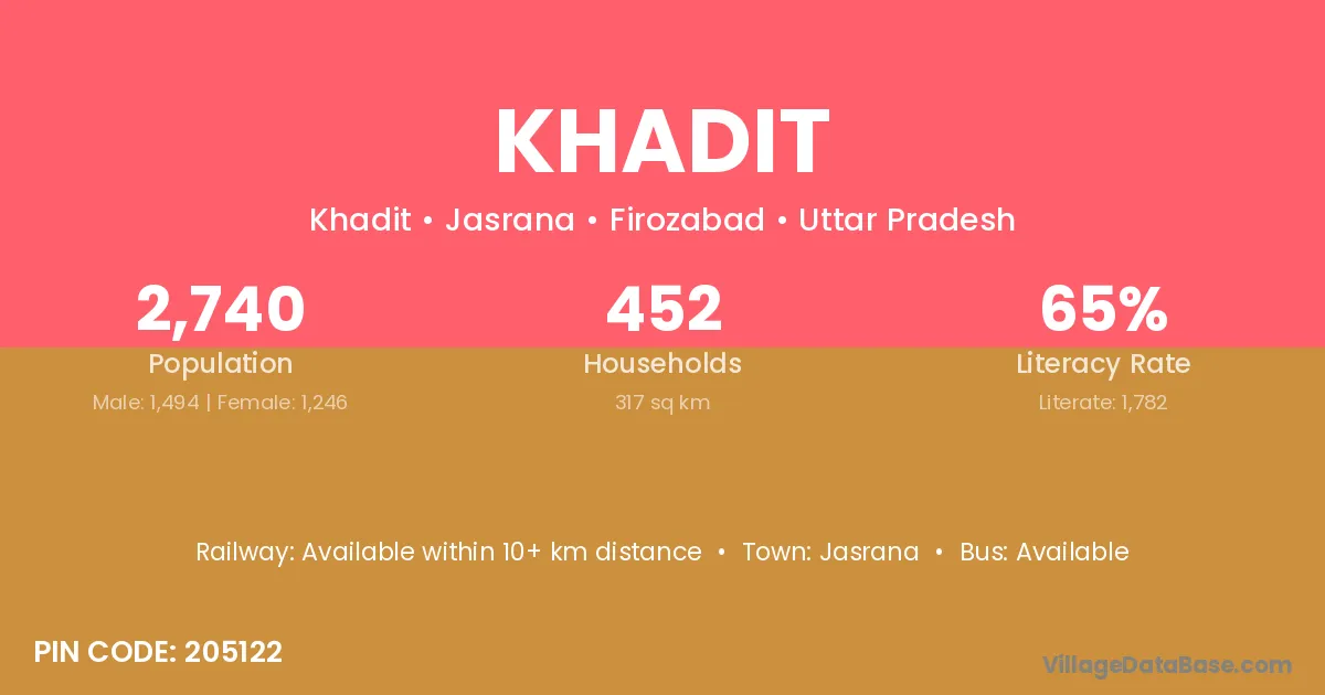 Bhind (45 km) is the nearest town to Khadit village for major economic activities and is located approximately 45 km away.
