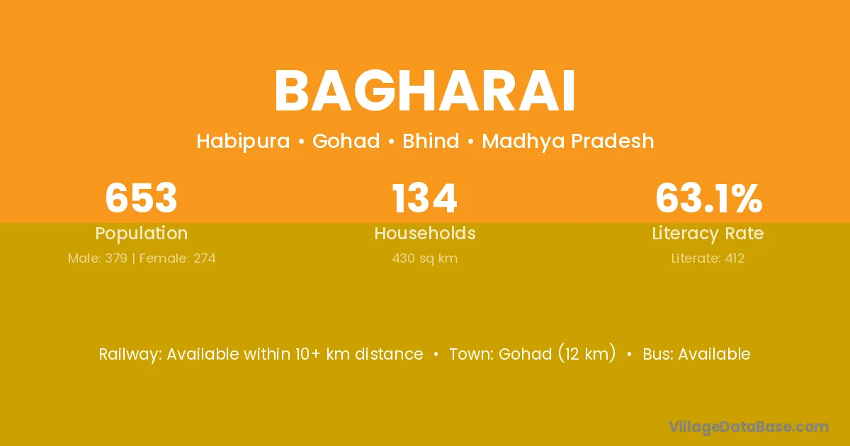 Gohad (12 km) is the nearest town to Bagharai village for major economic activities and is located approximately 12 km away.