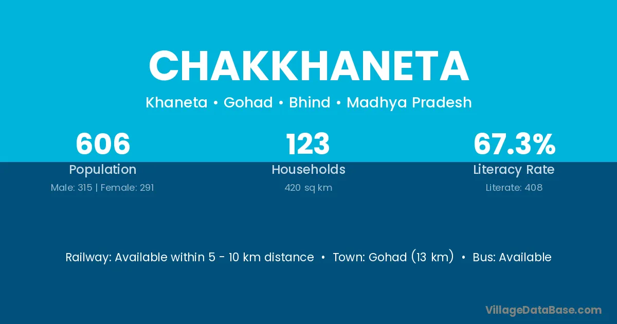Gohad (13 km) is the nearest town to Chakkhaneta village for major economic activities and is located approximately 13 km away.