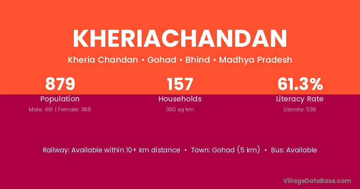 Gohad (5 km) is the nearest town to Kheriachandan village for major economic activities and is located approximately 5 km away.