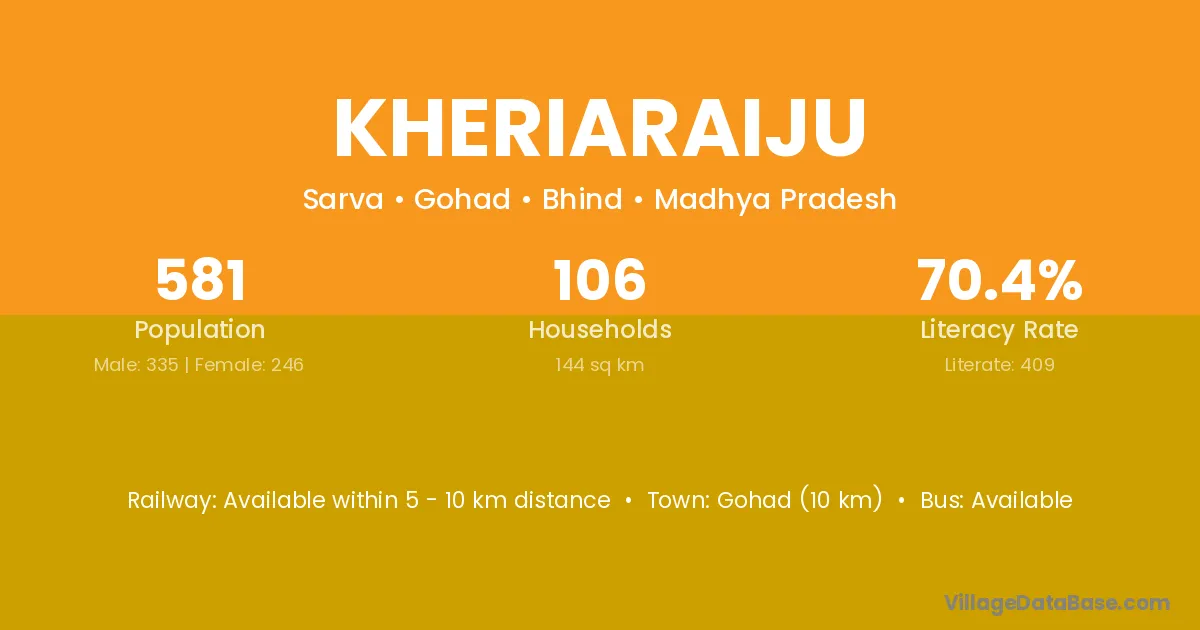 Gohad (10 km) is the nearest town to Kheriaraiju village for major economic activities and is located approximately 10 km away.