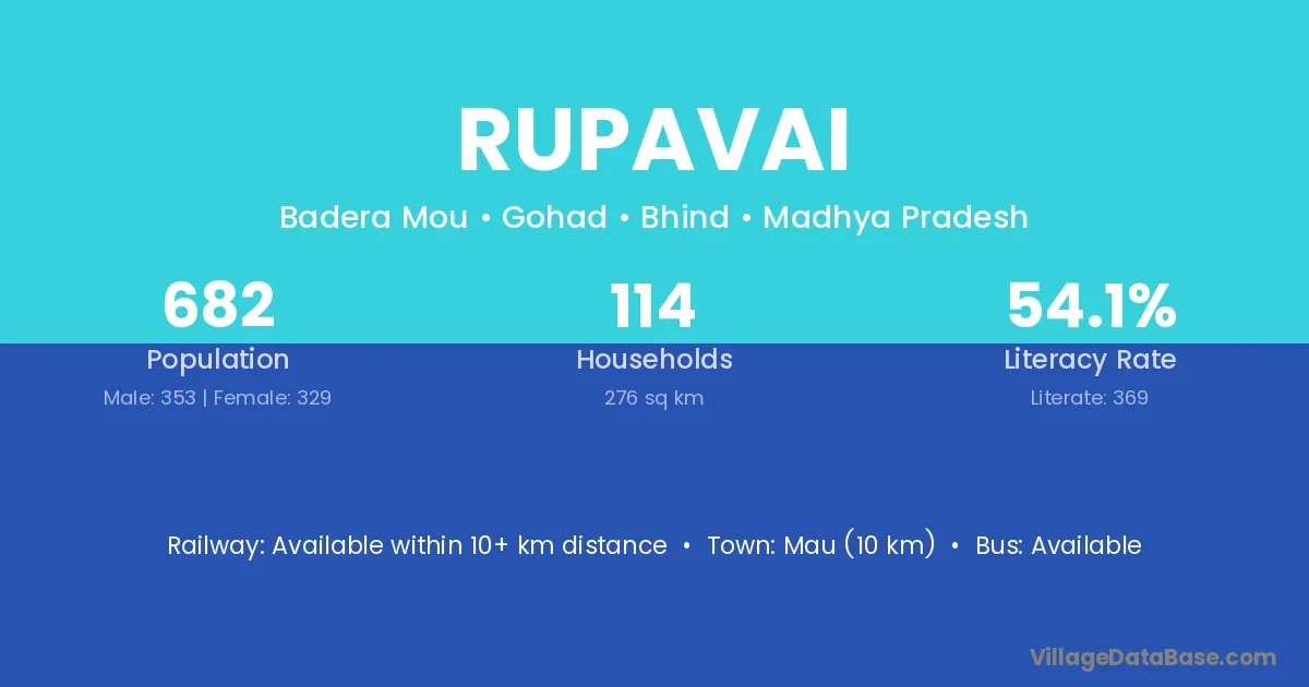 Rupavai village has a total population of 682 people, of which 353 are males and 329 are females.