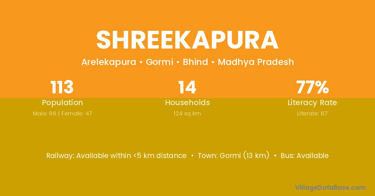 Gormi (13 km) is the nearest town to Shreekapura village for major economic activities and is located approximately 13 km away.