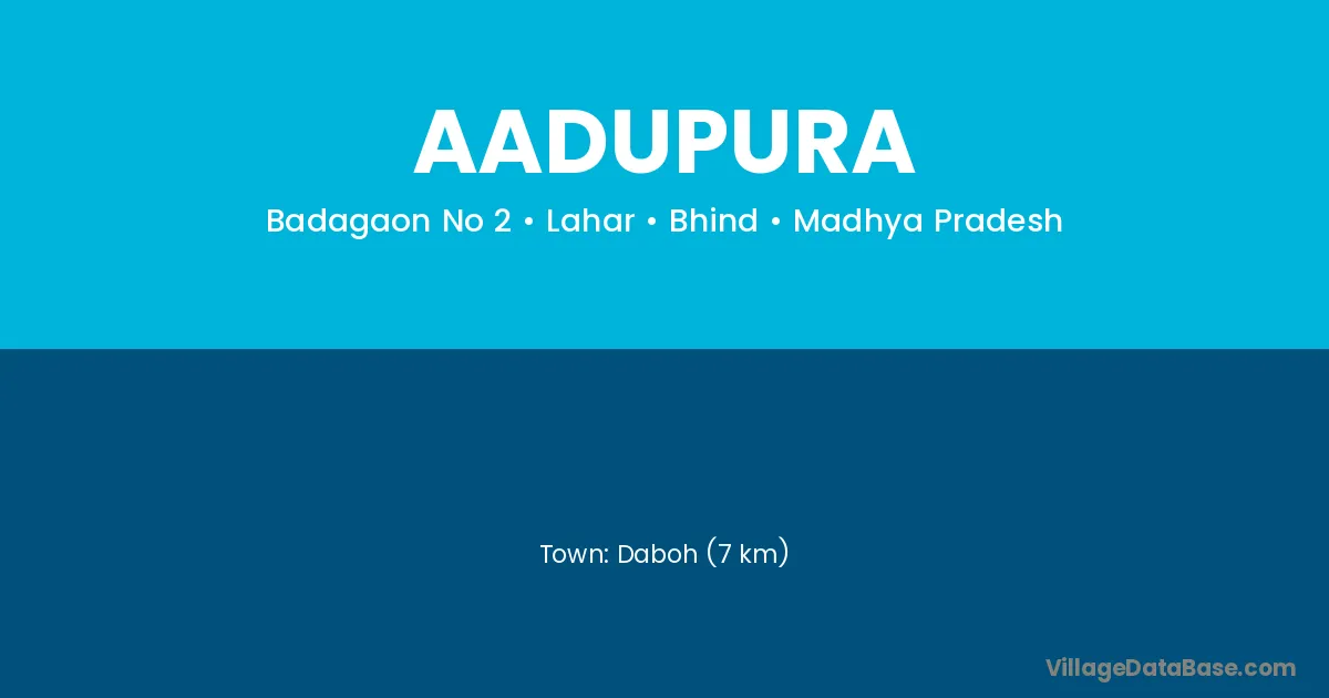 Daboh (7 km) is the nearest town to Aadupura village for major economic activities and is located approximately 7 km away.
