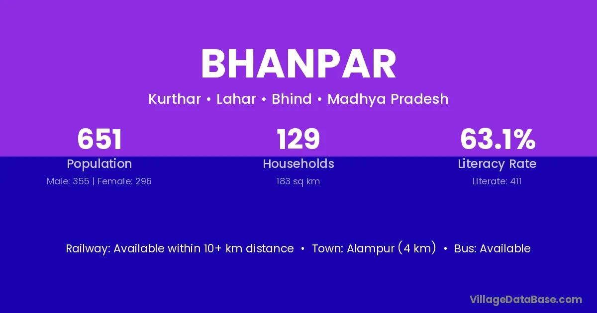 Alampur (4 km) is the nearest town to Bhanpar village for major economic activities and is located approximately 4 km away.