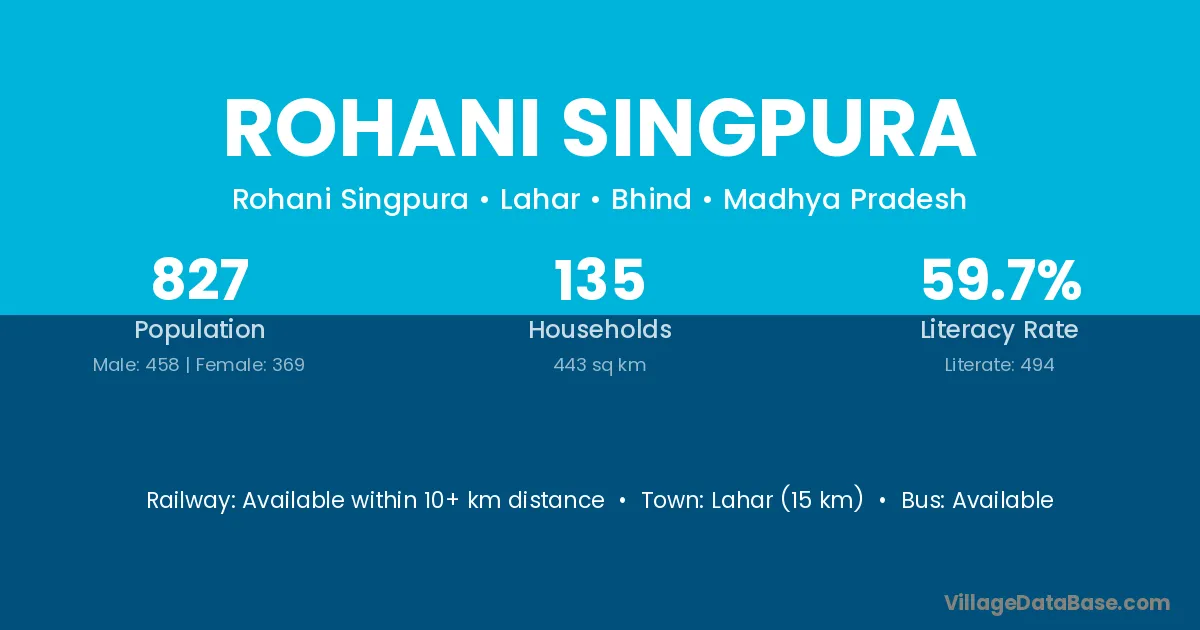 Lahar (15 km) is the nearest town to Rohani Singpura village for major economic activities and is located approximately 15 km away.
