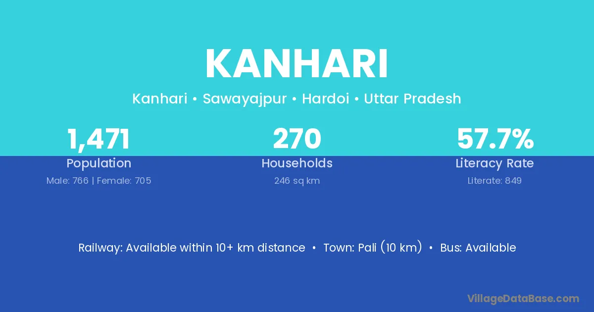 The literacy rate of Kanhari village is 72.42%. Male literacy stands at 81.34% and female literacy at 61.90%.