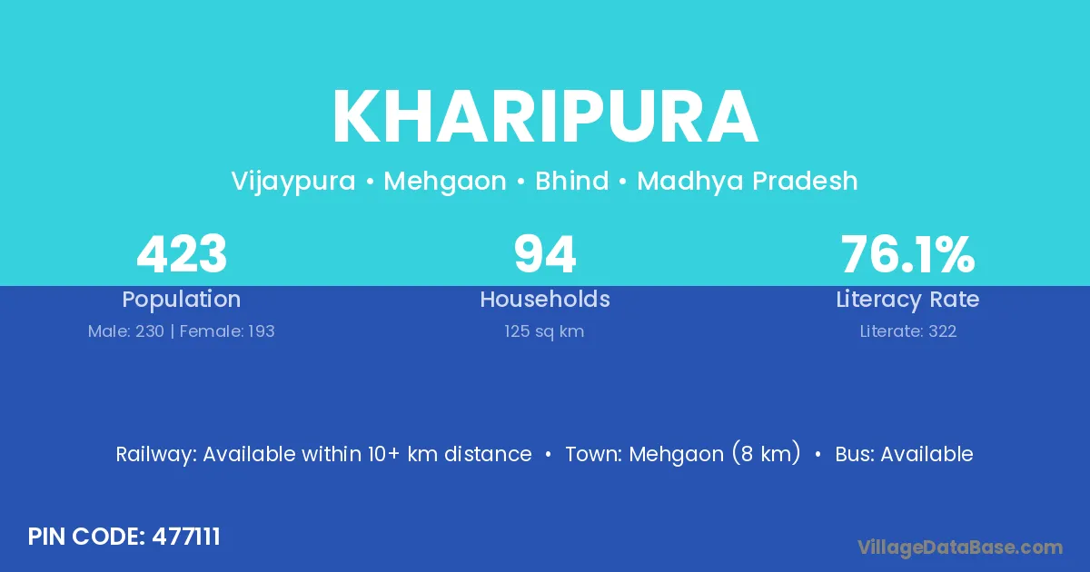 According to Census 2011 information, the village code of Kharipura village is 477111.