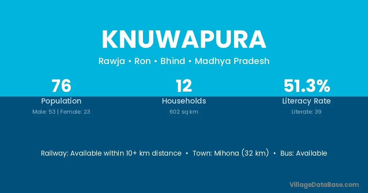 Knuwapura village has a total population of 76 people, of which 53 are males and 23 are females.