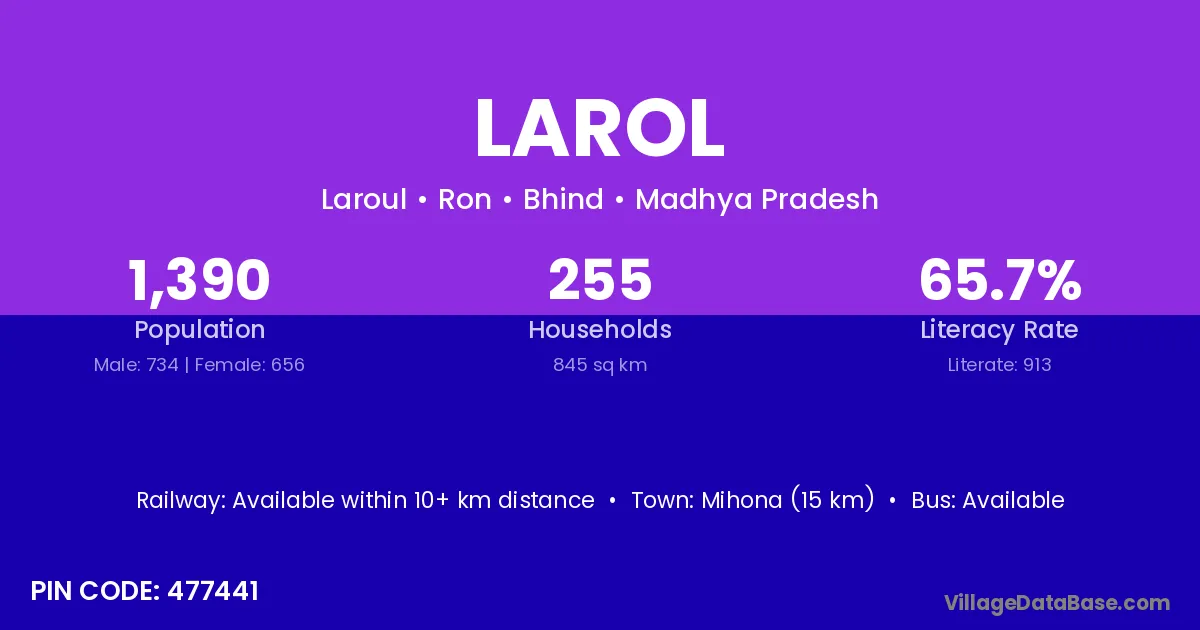 Larol village is located in the Ron Tehsil of the Bhind district in Madhya Pradesh .