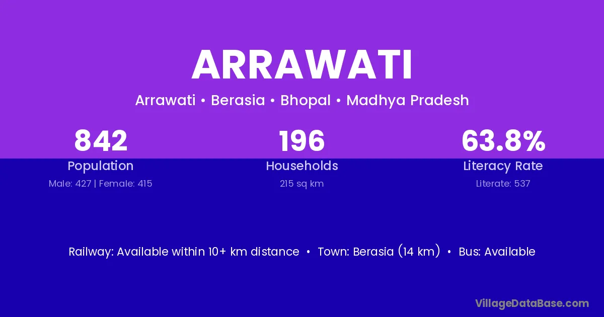 Berasia (14 km) is the nearest town to Arrawati village for major economic activities and is located approximately 14 km away.