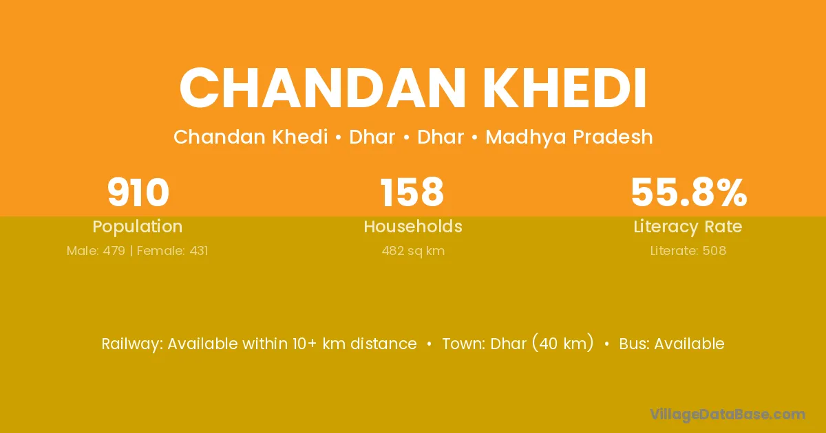 Berasia (17 km) is the nearest town to Chandan Khedi village for major economic activities and is located approximately 17 km away.