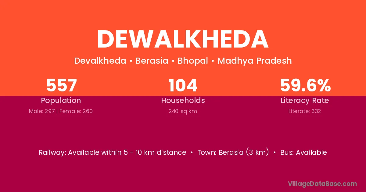 Berasia (3 km) is the nearest town to Dewalkheda village for major economic activities and is located approximately 3 km away.