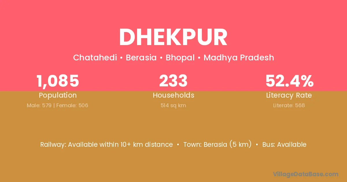 Berasia (5 km) is the nearest town to Dhekpur village for major economic activities and is located approximately 5 km away.