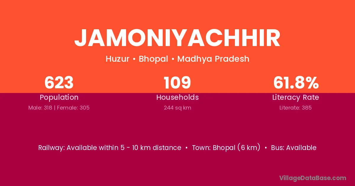 Bhopal (6 km) is the nearest town to Jamoniyachhir village for major economic activities and is located approximately 6 km away.