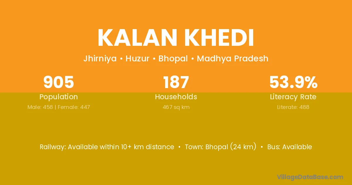 Bhopal (24 km) is the nearest town to Kalan Khedi village for major economic activities and is located approximately 24 km away.