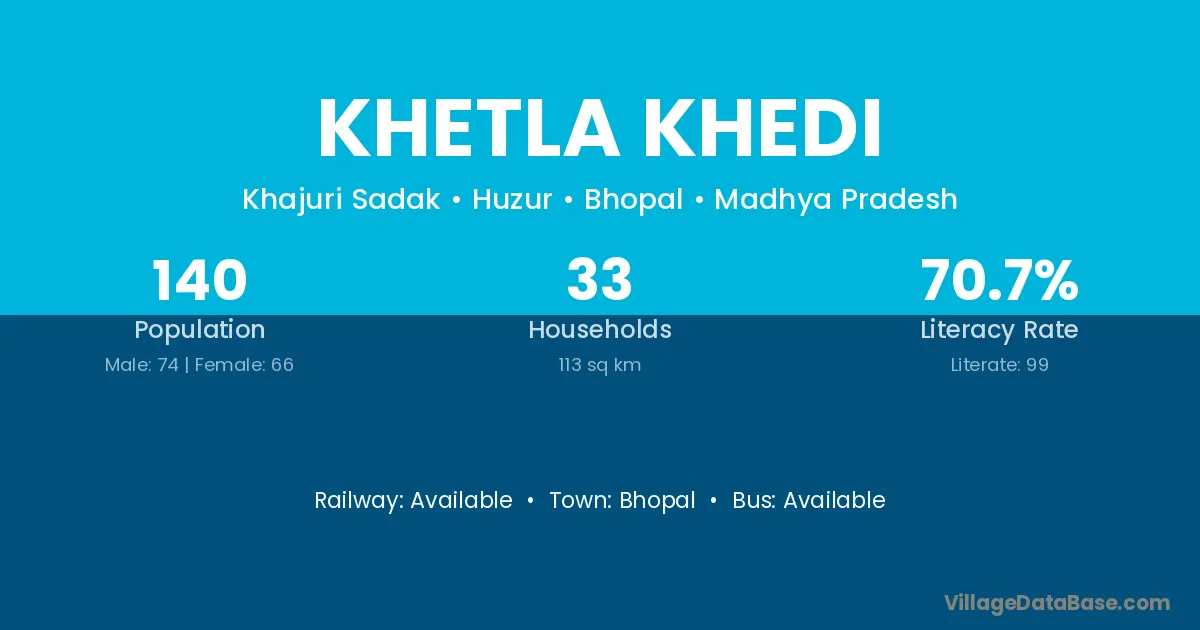 Khetla Khedi village has a total population of 140 people, of which 74 are males and 66 are females.