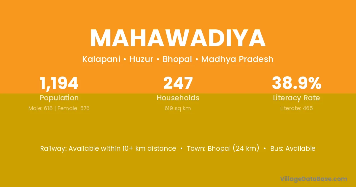 Bhopal (24 km) is the nearest town to Mahawadiya village for major economic activities and is located approximately 24 km away.