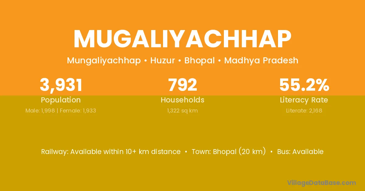 Bhopal (20 km) is the nearest town to Mugaliyachhap village for major economic activities and is located approximately 20 km away.