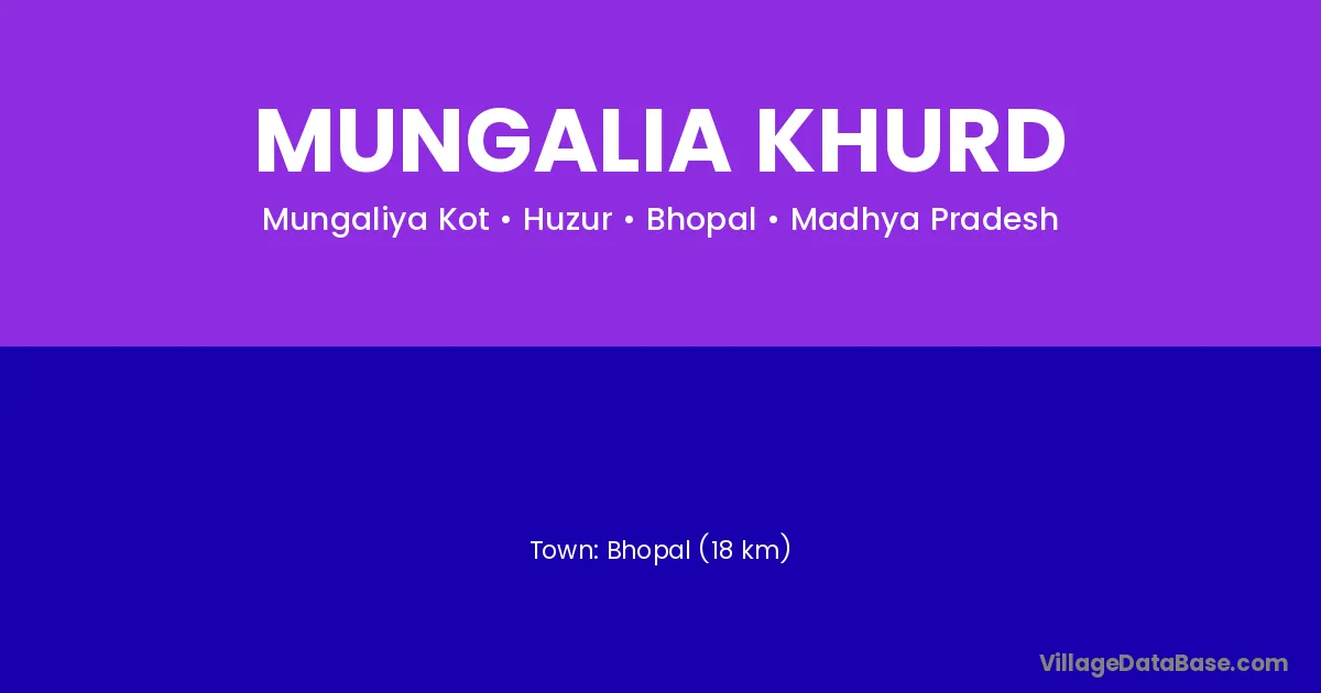 Bhopal (18 km) is the nearest town to Mungalia Khurd village for major economic activities and is located approximately 18 km away.