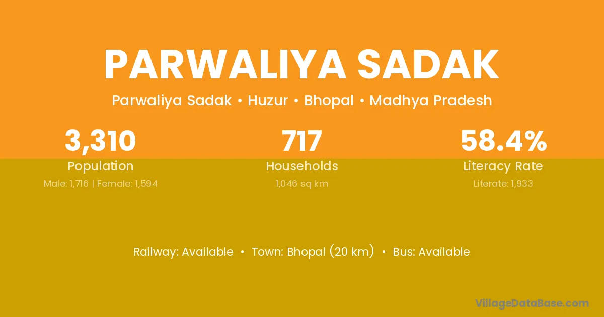 Bhopal (20 km) is the nearest town to Parwaliya Sadak village for major economic activities and is located approximately 20 km away.