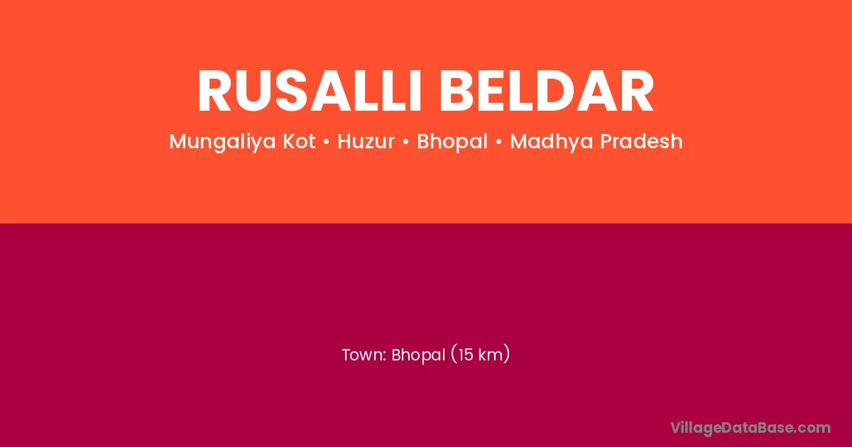 Bhopal (15 km) is the nearest town to Rusalli Beldar village for major economic activities and is located approximately 15 km away.