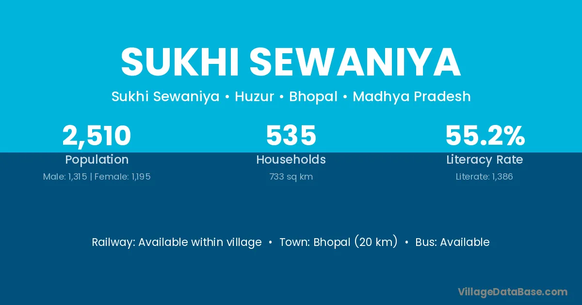 Bhopal (20 km) is the nearest town to Sukhi Sewaniya village for major economic activities and is located approximately 20 km away.