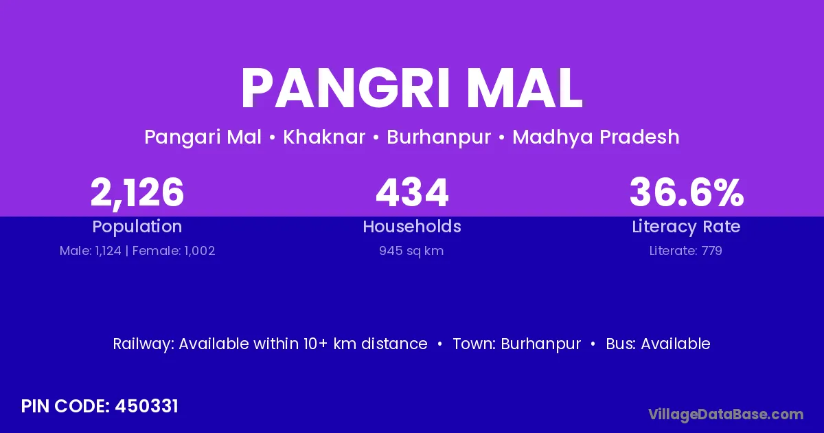 Burhanpur is the nearest town to Pangri Mal village for major economic activities