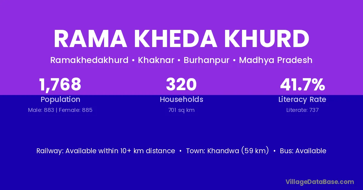 Khandwa (59 km) is the nearest town to Rama Kheda Khurd village for major economic activities and is located approximately 59 km away.