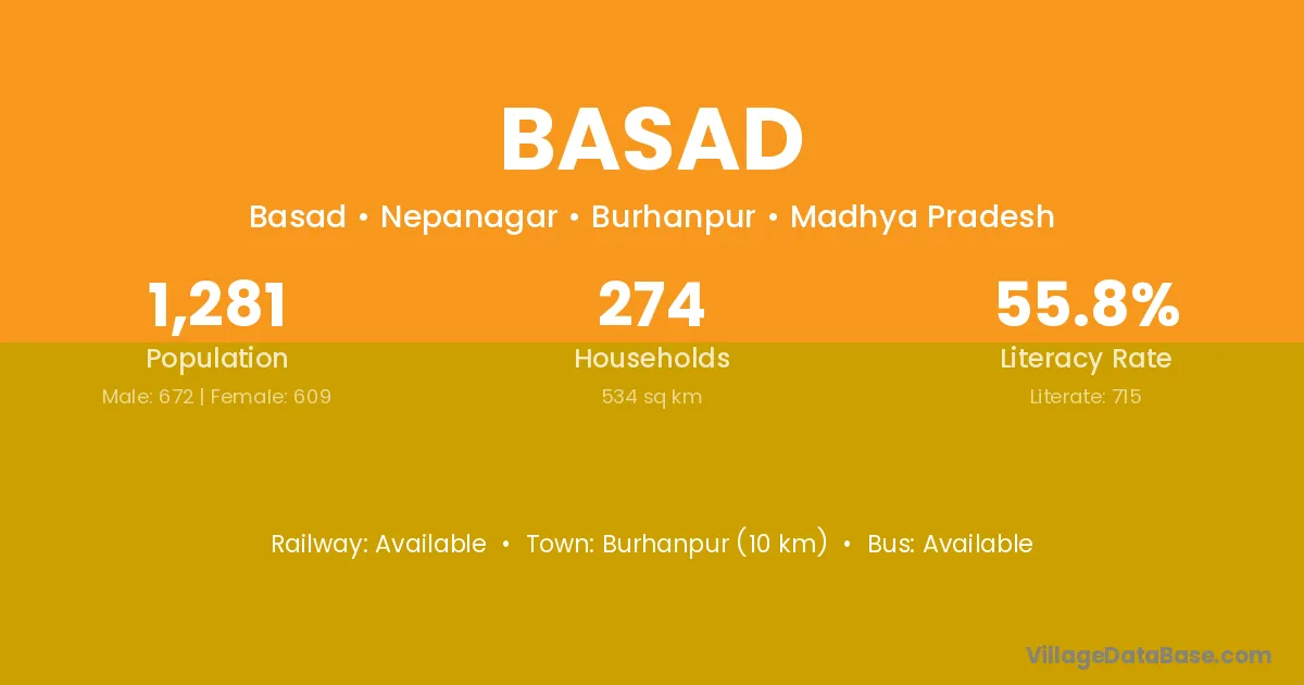 Burhanpur (10 km) is the nearest town to Basad village for major economic activities and is located approximately 10 km away.