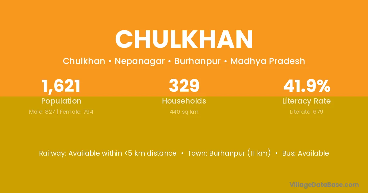 Burhanpur (11 km) is the nearest town to Chulkhan village for major economic activities and is located approximately 11 km away.