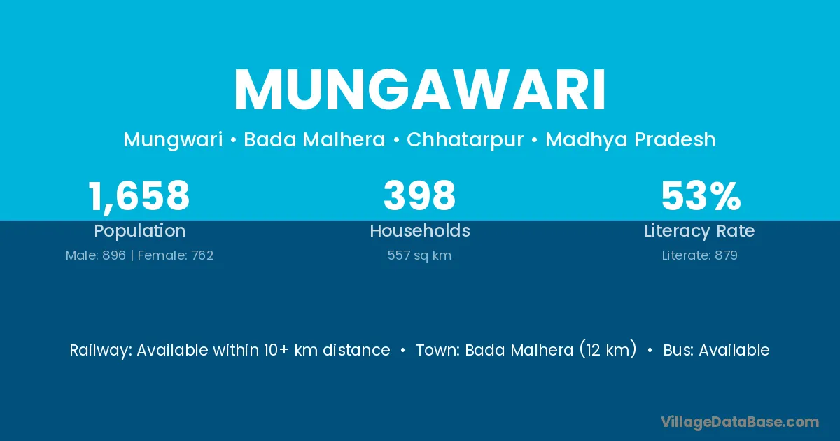 Bada Malhera (12 km) is the nearest town to Mungawari village for major economic activities and is located approximately 12 km away.