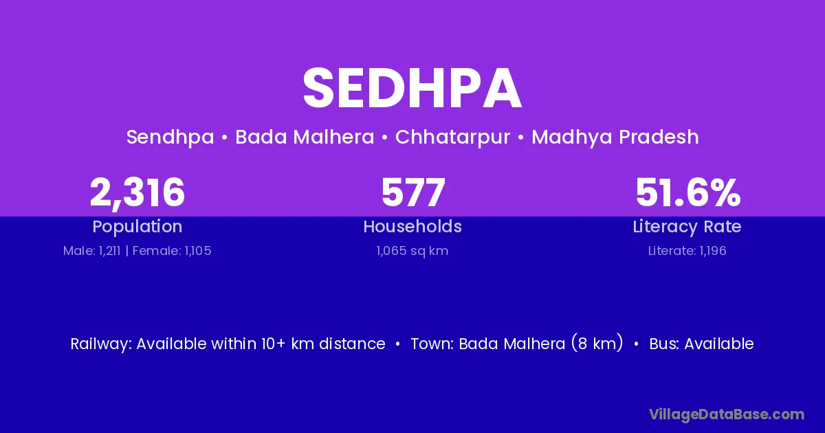 Bada Malhera (8 km) is the nearest town to Sedhpa village for major economic activities and is located approximately 8 km away.