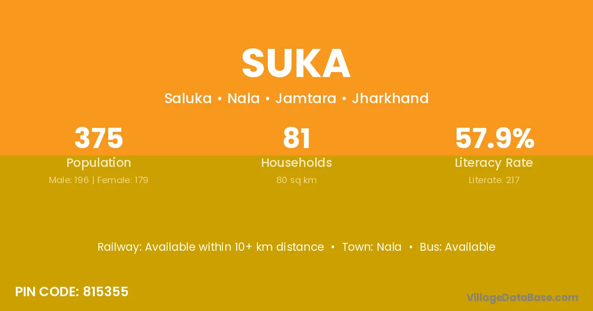 Bada Malhera is the nearest town to Suka village for major economic activities