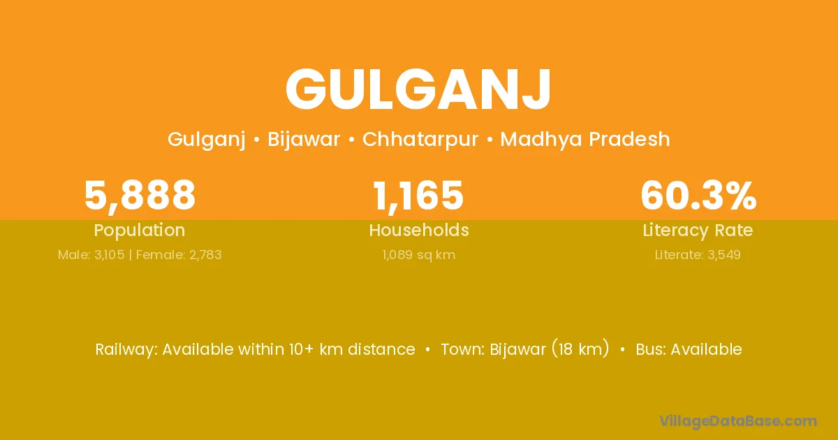 Gulganj village has a total population of 5,888 people, of which 3,105 are males and 2,783 are females.