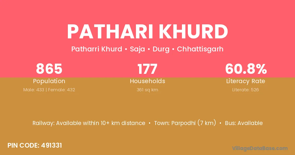 Pathari Khurd village has a total population of 276 people, of which 145 are males and 131 are females.