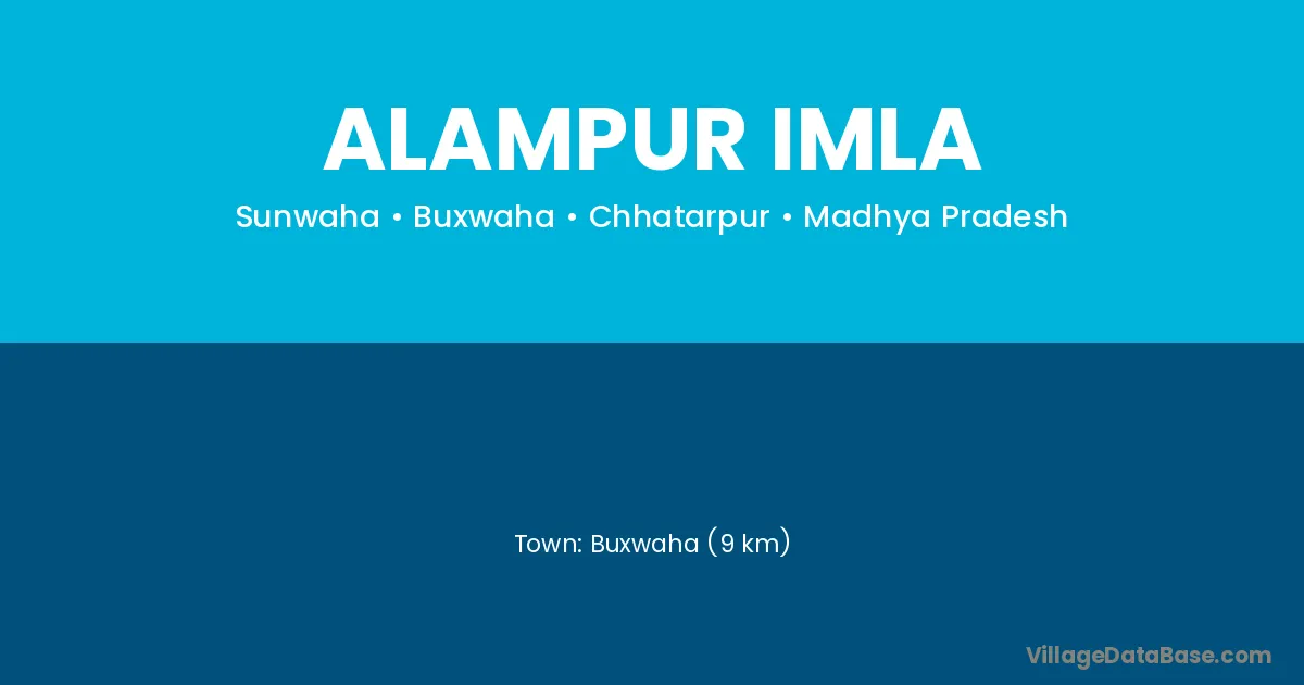 Buxwaha (9 km) is the nearest town to Alampur Imla village for major economic activities and is located approximately 9 km away.