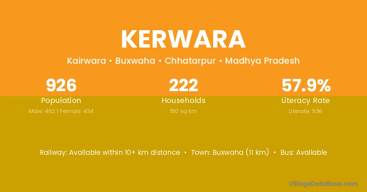 Buxwaha (11 km) is the nearest town to Kerwara village for major economic activities and is located approximately 11 km away.