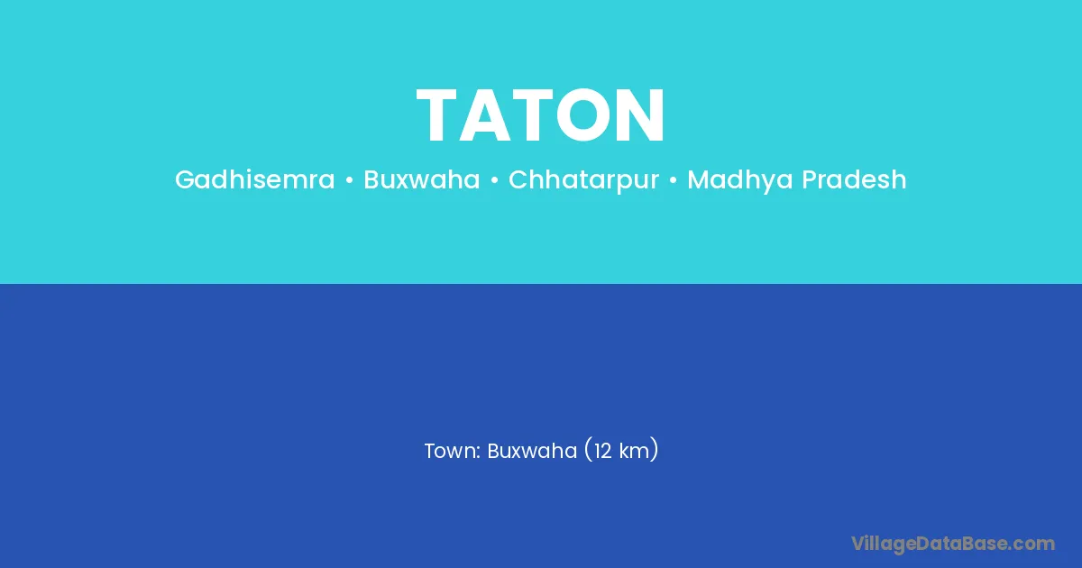 Buxwaha (12 km) is the nearest town to Taton village for major economic activities and is located approximately 12 km away.