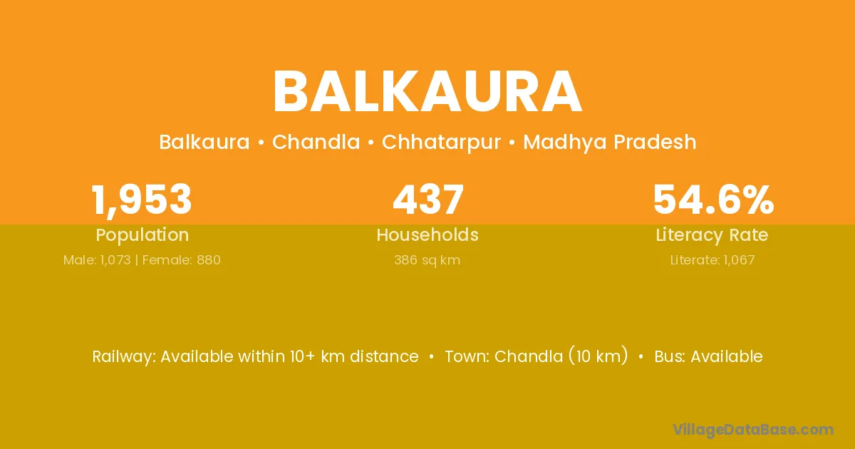 Balkaura village has a total population of 1,953 people, of which 1,073 are males and 880 are females.