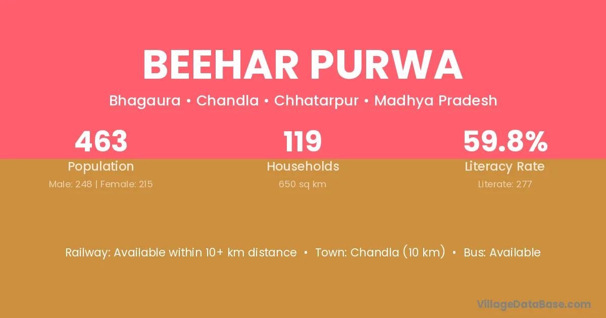 Beehar Purwa village is located in the Chandla Tehsil of the Chhatarpur district in Madhya Pradesh .