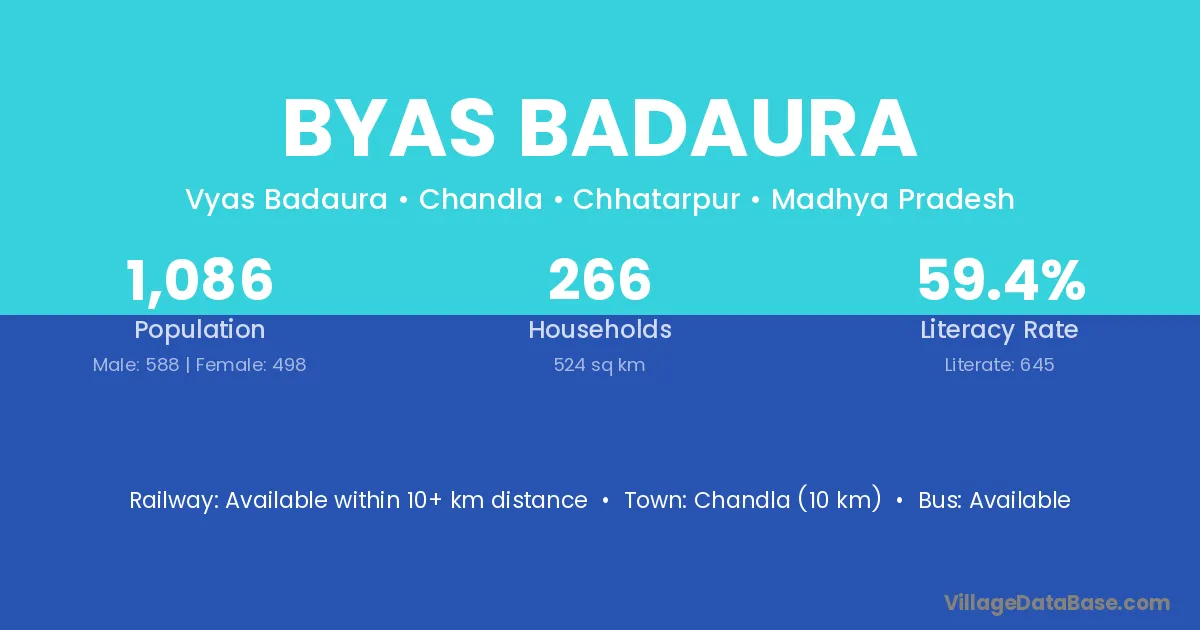 Chandla (10 km) is the nearest town to Byas Badaura village for major economic activities and is located approximately 10 km away.