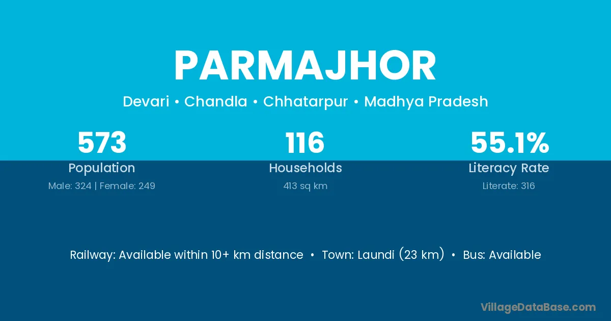 Laundi (23 km) is the nearest town to Parmajhor village for major economic activities and is located approximately 23 km away.
